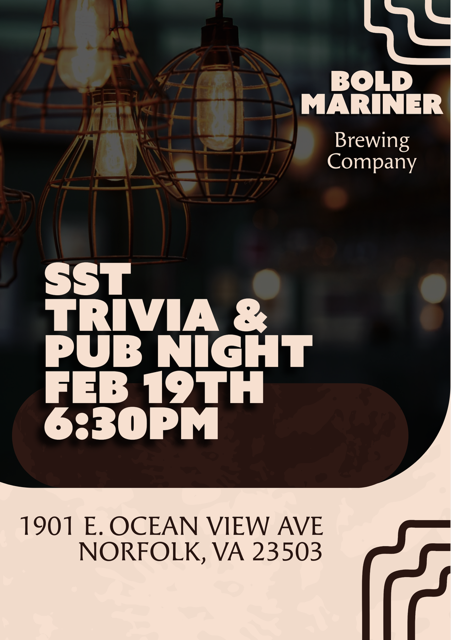 Join the SST at Bold Mariner for Trivia & Taps. Gather at 6:30 to register for the trivia and find a seat as a group.